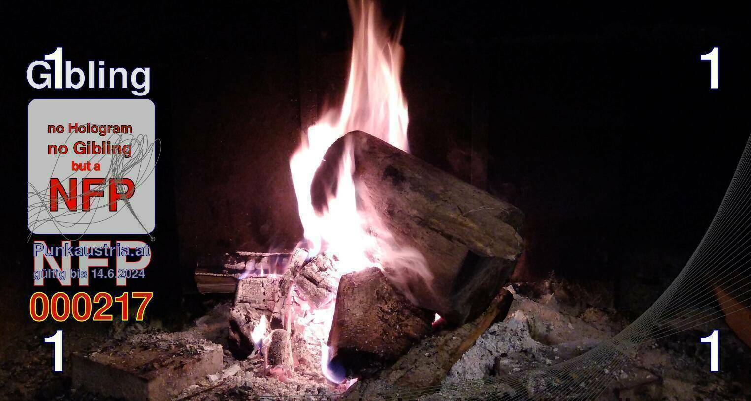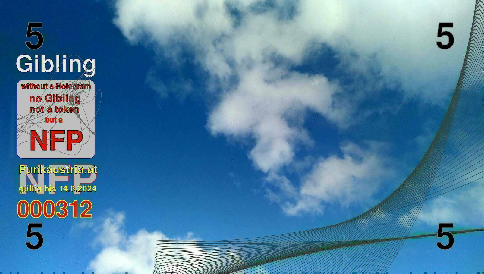 NFP bedeutet: 'Non Fungible Picture'. Das bezeichnet nicht austauschbare, einzigartige Bilder. Als Serienbilder sind Bilder von Flammen, Wolken und Wasseroberflächen Ausgangspunkt für den Gibling 2.0. Jedes Bild wird durch die Seriennummer und einer Prüfsumme eindeutig über die Metatags des nächsten Bildes signiert. Dabei wird jeder einzelne 1er-, 2er- und 5er-Schein der Communitywährung zum Unikat. Die Scheine können über eine Internetadresse „aktiviert“ werden. Mit der Aktivierung erhält man einen Privatkey zur Punknote. Diese wird dann mit 1, 2, 5 oder 500 Givecoins aufgeladen. Der Gibling ist also nicht nur über sein Bild einzigartig, sondern er kann über den erhaltenen Privatkey als Paperwallet verwendet werden. Das Paperwallet funktioniert jedoch nur so lange, bis die Givecoins vom Gibling2.0 in ein digitales Kryptowallet verschoben werden. Mit jeder Aktivierung wird auch gleichzeitig ein neues NFP erzeugt, in dessen Metatags die Prüfsumme aller bisher aktivierten Bilder codiert zu finden sind.