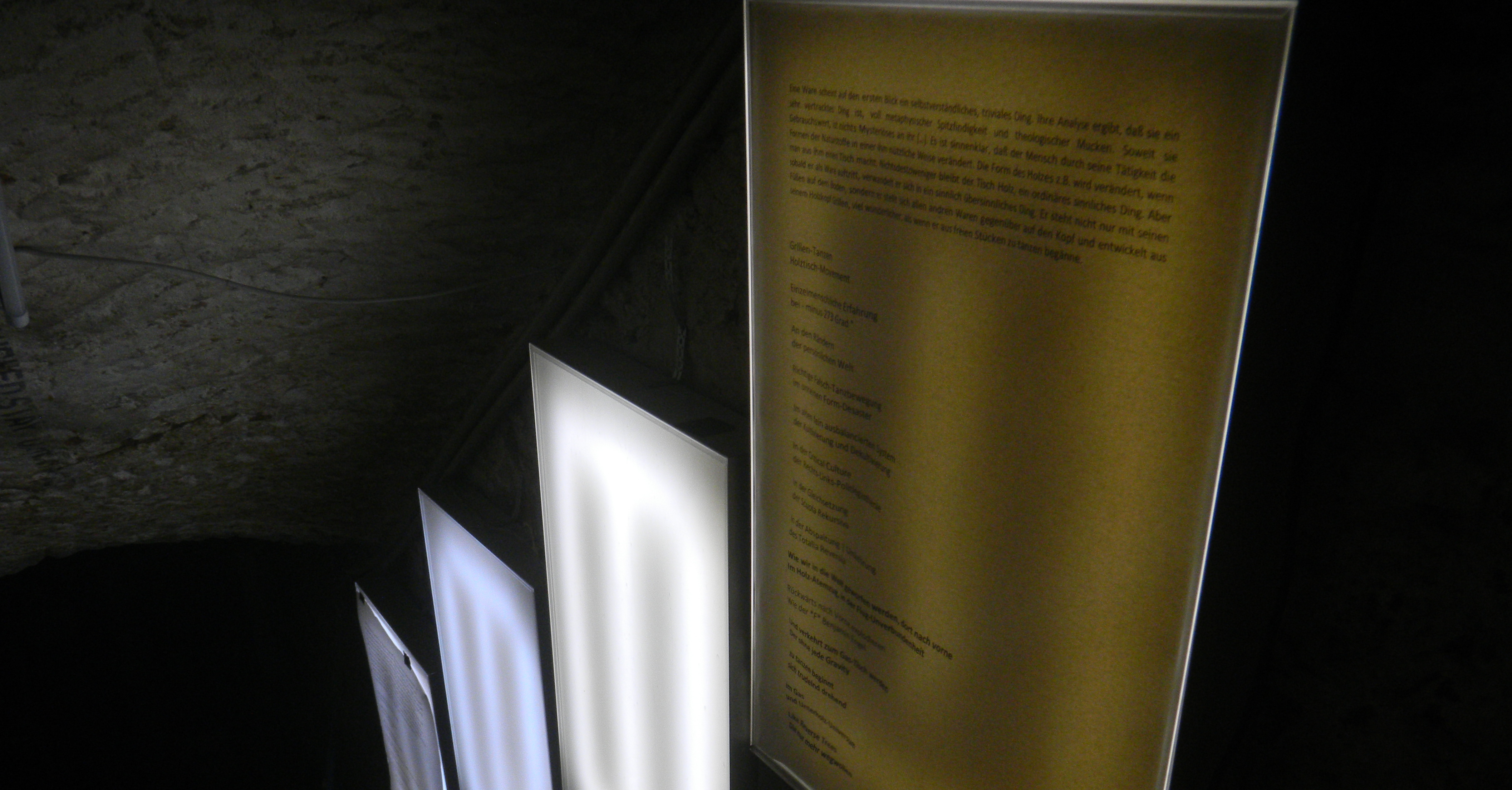 In einem nicht näher definierten Abflug und Abstieg entfernen wir uns mit Sinn-Resten und Text-Referenzen von einer World as we know it. Wir atmen Widersprüche ein. Der Gesamtzusammenhang als Denkorgan, Syntax über Sprache hinaus, Wahrnehmung als transformierter und gepulster Rhythmus, Verstehen als Disconnected Connection: In einer technologisierten und rationalisierten Welt ziehen Katastrophen herauf, während sich Menschen in Pseudokämpfe verstricken und im täglichen Leben oder auch auf fremden Planeten mit ALLEM konfrontiert sind und es immer schwieriger wird, überhaupt noch Sinn zu erkennen. Was tun?