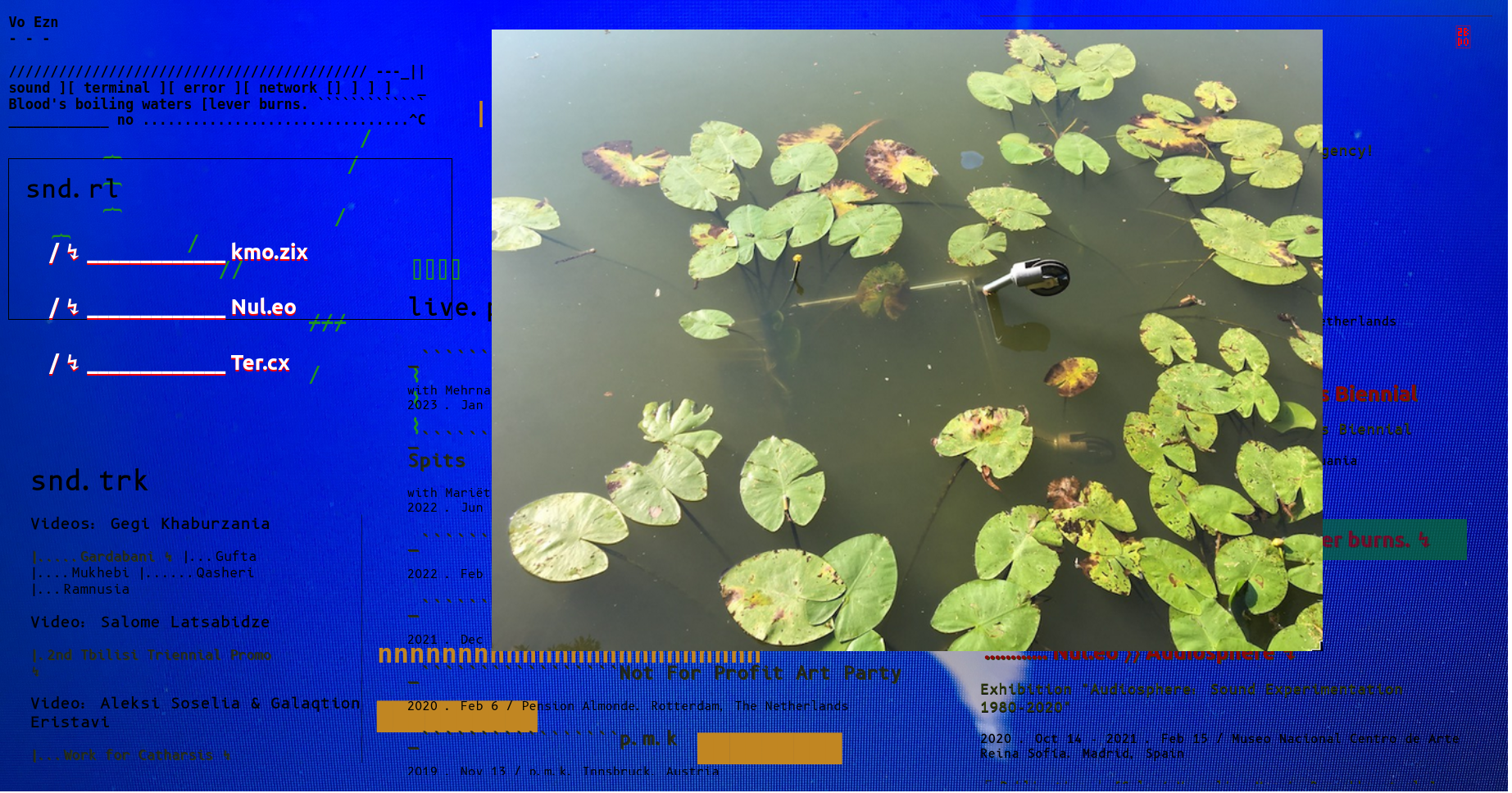 vo ezn /vɔ ɪzn/ – sound && infrastructure artist, working on server-side tensions and introverted interfaces ][ figuring out tools for-to knowledge-sharing / opting-out / autonomy ][ –to-for-by-with on my own terms